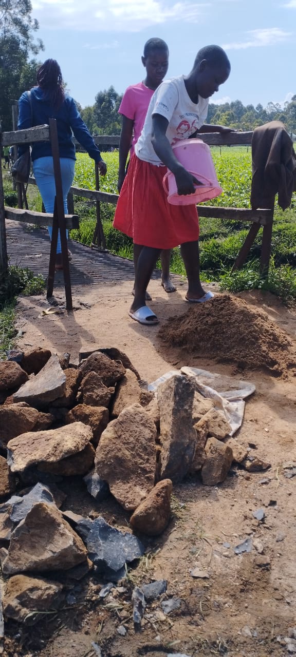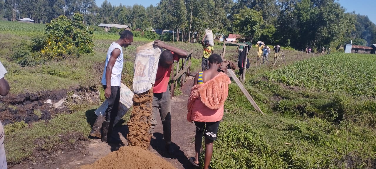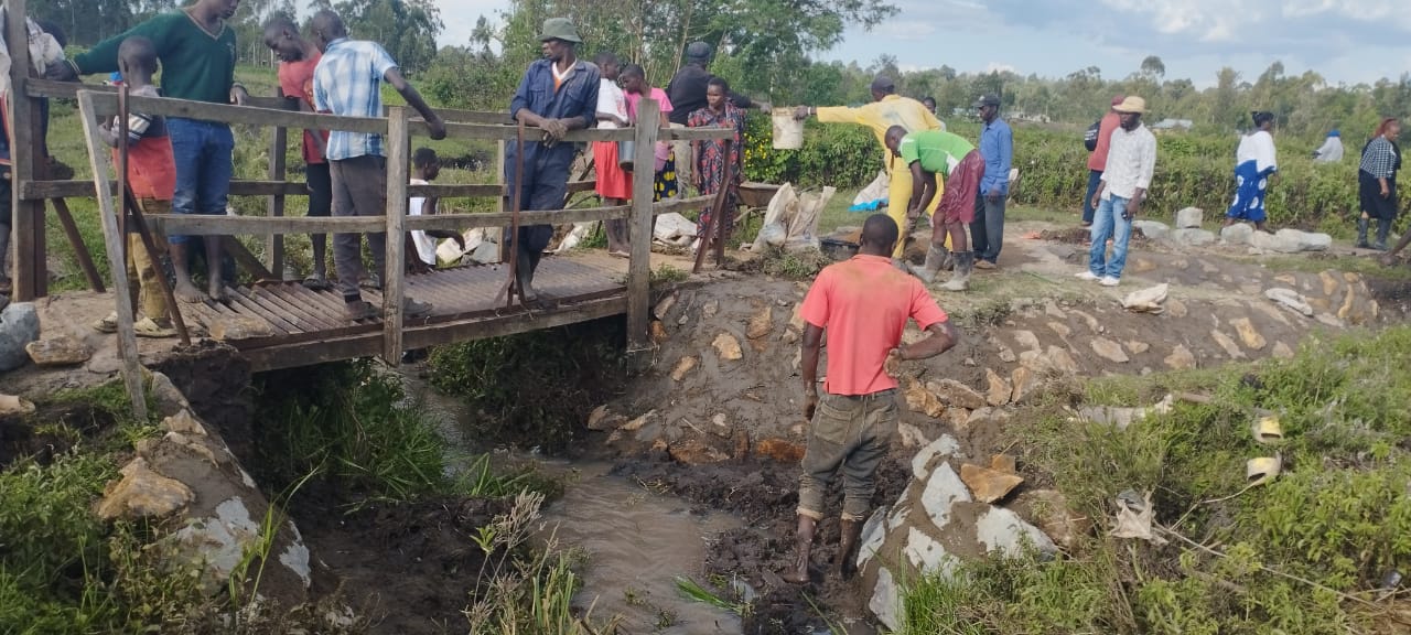 The Lyavo community in Kenya, home to the Lord’s Servants Home and School, is split by a water drainage creek. During the two annual rainy seasons, getting from homes on one side to the other side with the school, church, and clean water is only possible on one of two pedestrian bridges. These bridges were built over the past several years by joint Mission Servants Ministry (MSM) and Lyavo community partnership. One of the bridges was in need of stabilization against erosion caused by the last few rainy seasons which were particularly heavy.