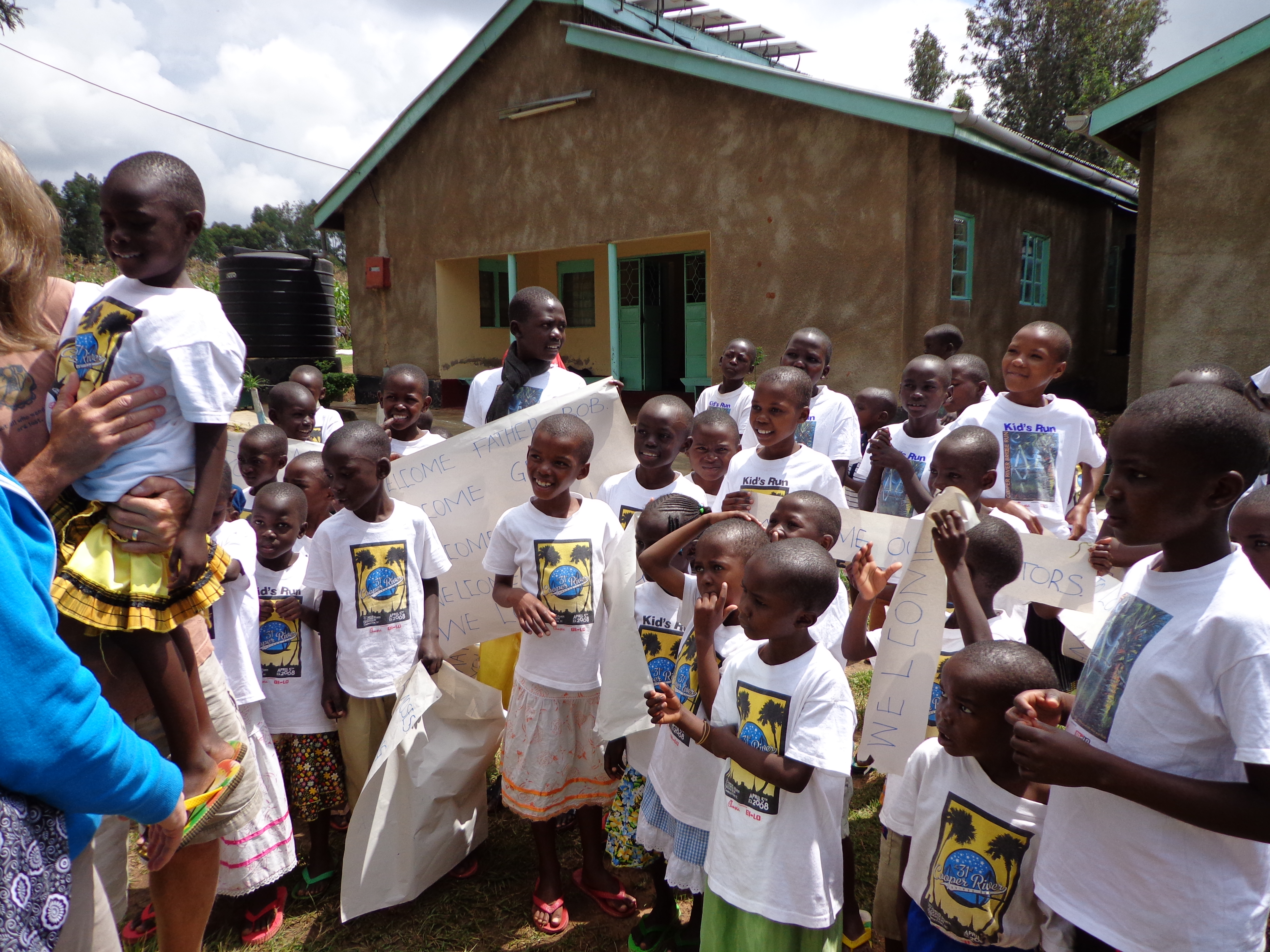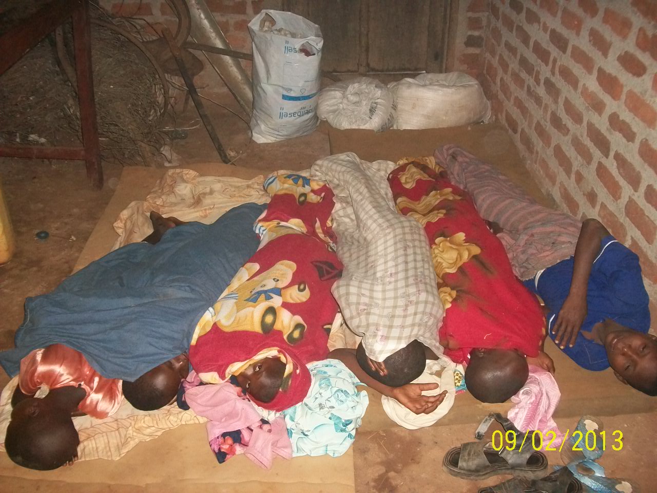 The kids and few caretakers are existing in a very cramped and basic way.  They can get clean water at a community well 1/2 mile away but all the children wake at 3:00am to stand in line at the hand pump so they can get water for the day, before walking over 3 miles to school.