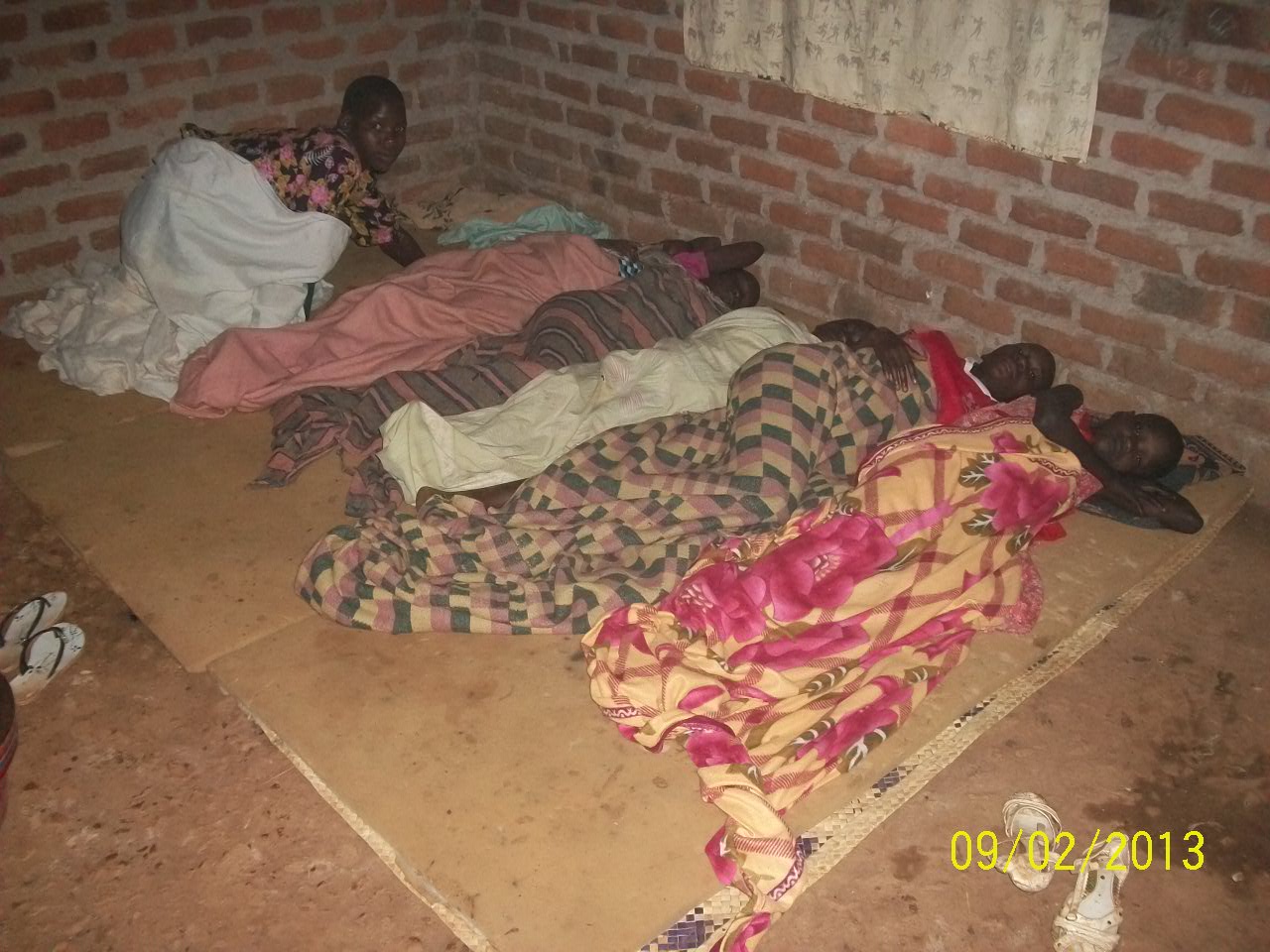 Sleeping quarters are safe but too cramped and on an unfinished floor with no mosquito nets.