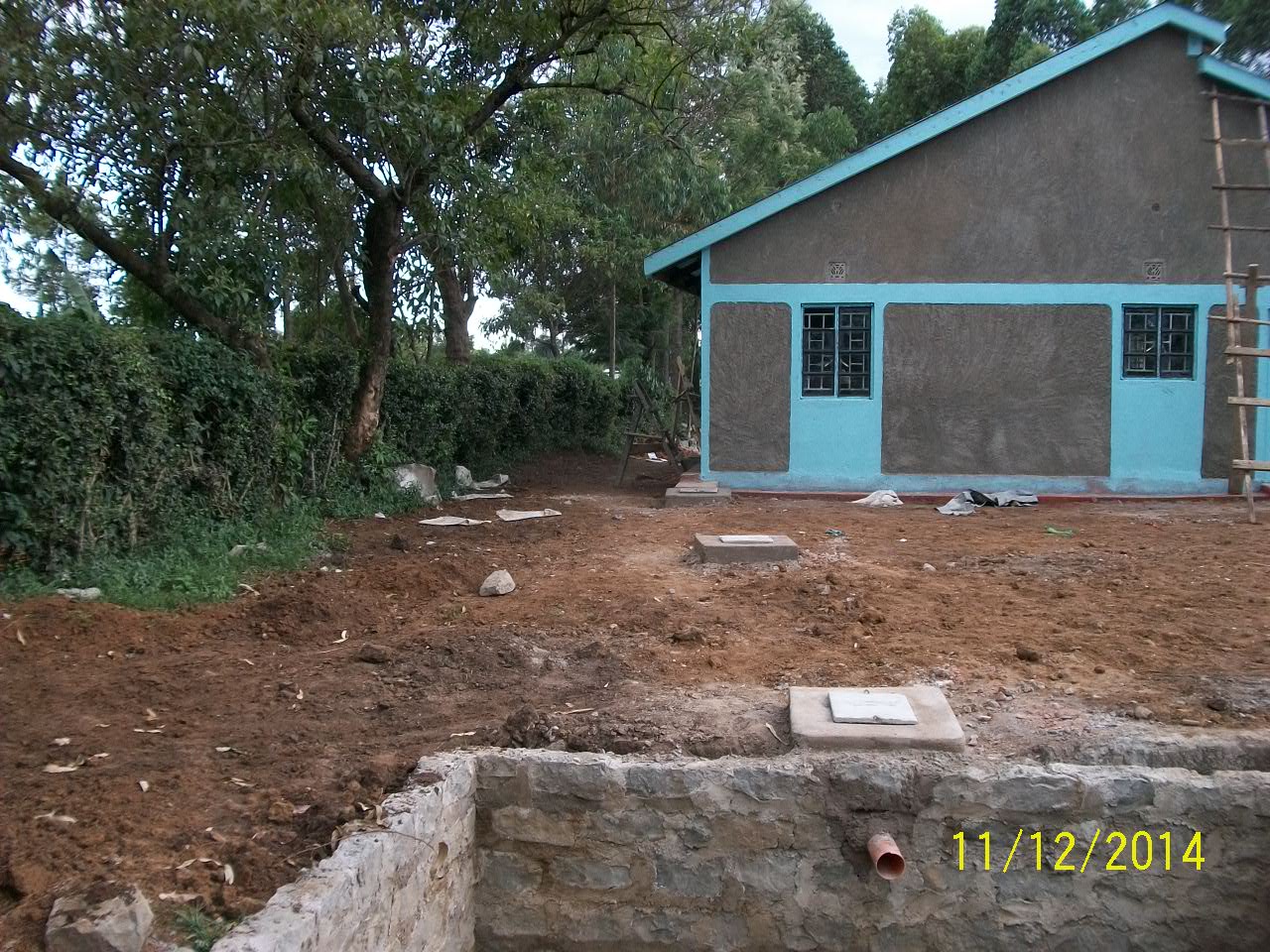 Rear of the house with view of septic system (unfinished).